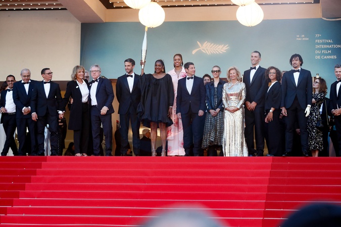 Brahim Asloum, David Lisnard, guest, Iris Knobloch, Tony Estanguet, Thierry Rey, Marie-José Perec et la flamme olympique, Marie Patouillet, guest, Delphine Ernotte, Alexis Hanquinquant, Nélia Barbosa, Arnaud Assoumani, guest- Montée des marches du film « Marcello Mio » lors du 77ème Festival International du Film de Cannes, au Palais des Festivals à Cannes. Le 21 mai 2024 © Christophe Clovis / Bestimage Red carpet of the movie « Marcello Mio » during the 77th Cannes International Film Festival at the Palais des Festivals in Cannes, France. On may 21th 2024