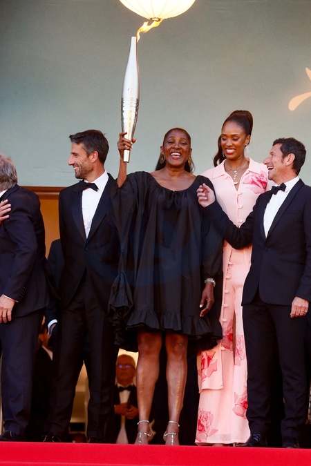 Marie-José Pérec et la flamme Olympique - Montée des marches du film « Marcello Mio » lors du 77ème Festival International du Film de Cannes, au Palais des Festivals à Cannes. Le 21 mai 2024 © Christophe Clovis / Bestimage Red carpet of the movie « Marcello Mio » during the 77th Cannes International Film Festival at the Palais des Festivals in Cannes, France. On may 21th 2024