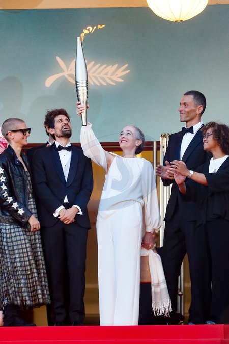 Delphine Ernotte et la flamme Olympique - Montée des marches du film « Marcello Mio » lors du 77ème Festival International du Film de Cannes, au Palais des Festivals à Cannes. Le 21 mai 2024 © Christophe Clovis / Bestimage Red carpet of the movie « Marcello Mio » during the 77th Cannes International Film Festival at the Palais des Festivals in Cannes, France. On may 21th 2024