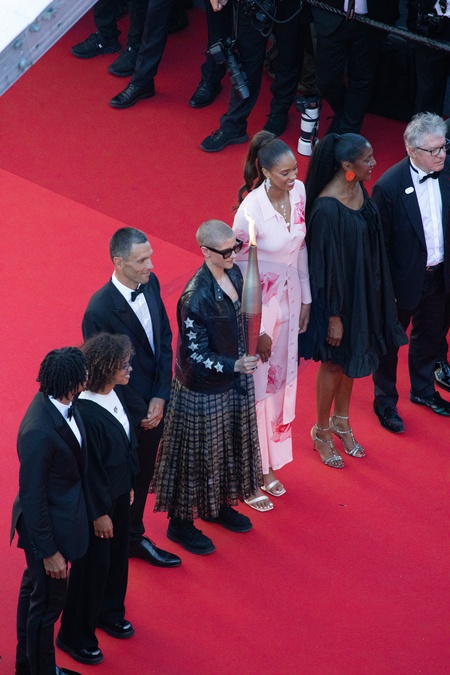 Marie-Josée Perec, Iliana Rupert, Marie Patouillet, Alexis Hanquinquant et la flamme Olympique, Nélia Barbosa, Arnaud Assoumani - - Montée des marches du film « Marcello Mio » lors du 77ème Festival International du Film de Cannes, au Palais des Festivals à Cannes. Le 21 mai 2024 © Ivanka Voisin / Pool Cannes / Bestimage Red carpet of the movie « Marcello Mio » during the 77th Cannes International Film Festival at the Palais des Festivals in Cannes, France. On may 21th 2024