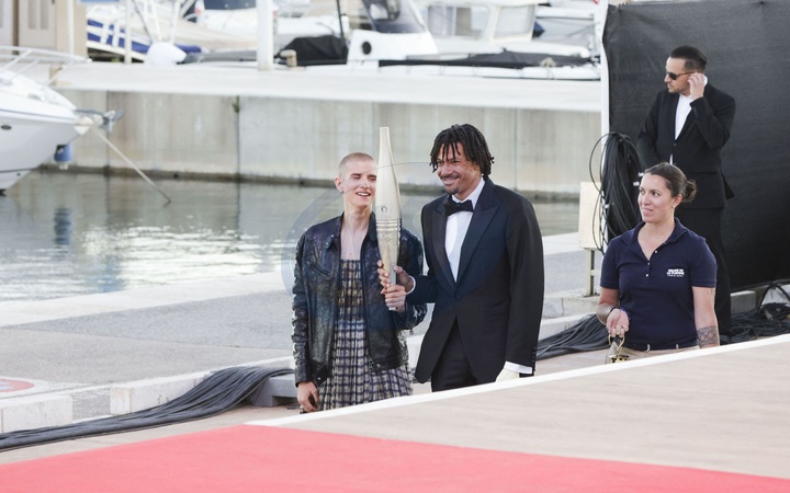 Exclusif - Marie Patouillet, Arnaud Assoumani et la flamme olympique - Plateau de l'émission "C à vous" lors du 77ème Festival International du Film de Cannes le 21 mai 2024. © Jack Tribeca/Bestimage No Web - Belgique et Suisse Set of the show "C à vous” during the 77th Cannes International Film Festival on May 21, 2024.