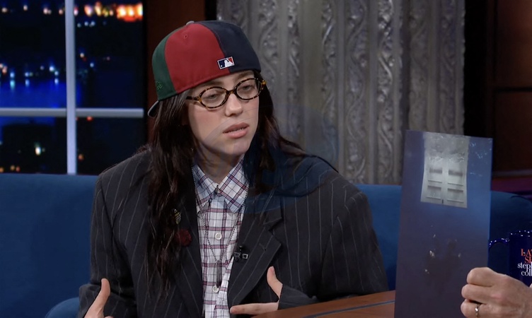 Pictures must credit: CBS Pop star Billie Eilish unveiled a new bespectacled new look when she appeared on TV to plug her latest album. She also told how she put her life on the line to shoot the album cover for Hit Me Hard And Soft, her first LP in three years. The sleeve shows the 22-year-old fully clothed and submerged in water. She appeared on the Stephen Colbert talk show where she admitted she still gets nervous releasing new music. Picture supplied by JLPPA