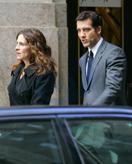 Julia Roberts i Clive Owen na planie filmu "Duplicity", Nowy Jork
