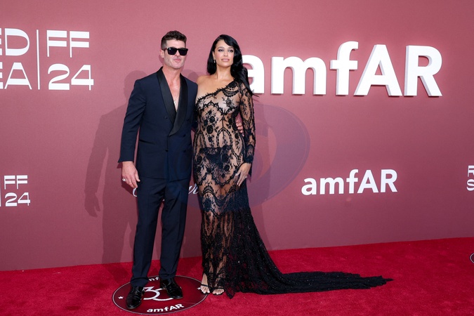 Robin Thicke et sa compagne April Love Geary - Photocall du gala de l'amfAR 2024 à l'Hôtel du Cap-Eden-Roc, Antibes, lors du 77ème Festival International du Film de Cannes. Le 23 mai 2024. © Moreau-Jacovides / Bestimage Celebs attending amfAR Gala Cannes 2024 at Hotel du Cap-Eden-Roc, during the 77th Cannes International Film Festival. On May 23th 2024 in Cap d'Antibes, France