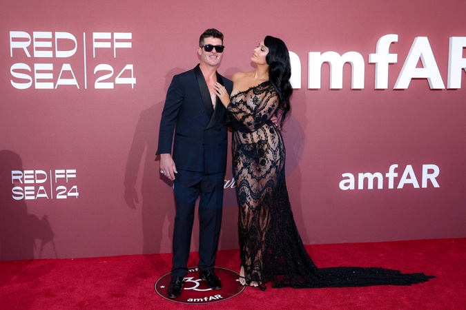 Robin Thicke et sa compagne April Love Geary - Photocall du gala de l'amfAR 2024 à l'Hôtel du Cap-Eden-Roc, Antibes, lors du 77ème Festival International du Film de Cannes. Le 23 mai 2024. © Moreau-Jacovides / Bestimage Celebs attending amfAR Gala Cannes 2024 at Hotel du Cap-Eden-Roc, during the 77th Cannes International Film Festival. On May 23th 2024 in Cap d'Antibes, France