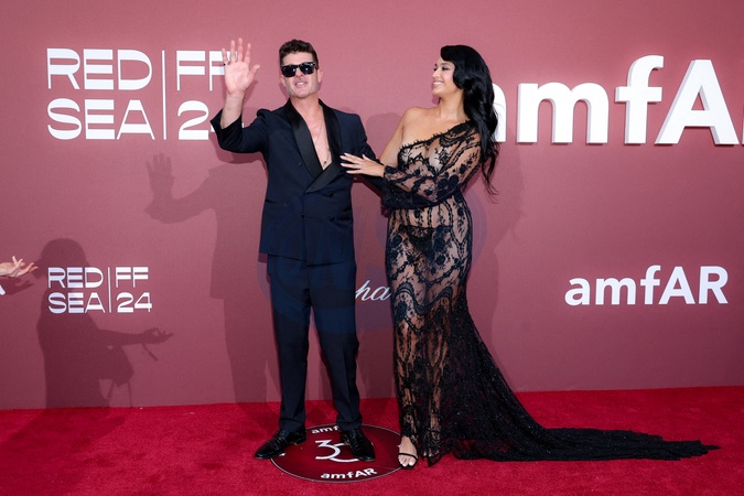 Robin Thicke et sa compagne April Love Geary - Photocall du gala de l'amfAR 2024 à l'Hôtel du Cap-Eden-Roc, Antibes, lors du 77ème Festival International du Film de Cannes. Le 23 mai 2024. © Moreau-Jacovides / Bestimage Celebs attending amfAR Gala Cannes 2024 at Hotel du Cap-Eden-Roc, during the 77th Cannes International Film Festival. On May 23th 2024 in Cap d'Antibes, France