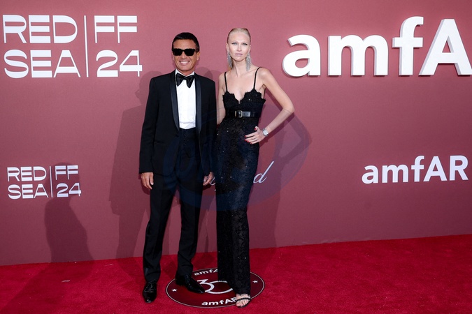Omar Harfouch (en Saint Laurent) et sa femme Yulia (habillée par Miu Miu) - Photocall du gala de l'amfAR 2024 à l'Hôtel du Cap-Eden-Roc, Antibes, lors du 77ème Festival International du Film de Cannes. Le 23 mai 2024. © Moreau-Jacovides / Bestimage Celebs attending amfAR Gala Cannes 2024 at Hotel du Cap-Eden-Roc, during the 77th Cannes International Film Festival. On May 23th 2024 in Cap d'Antibes, France