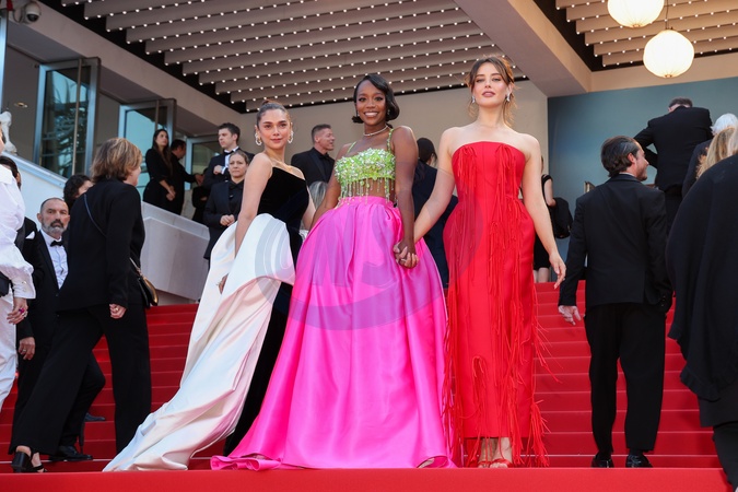 Aditi Rao Hydari, Aja Naomi King, Katherine Langford - Montée des marches du film « L'amour ouf » lors du 77ème Festival International du Film de Cannes, au Palais des Festivals à Cannes. Le 23 mai 2024 © Jacovides-Moreau / Bestimage Red carpet of the movie « Beating Hearts » during the 77th Cannes International Film Festival at the Palais des Festivals in Cannes, France. On may 23th 2024