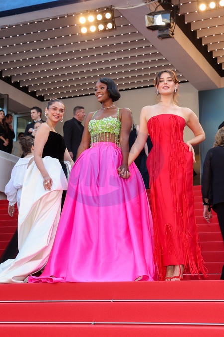 Aditi Rao Hydari, Aja Naomi King, Katherine Langford - Montée des marches du film « L'amour ouf » lors du 77ème Festival International du Film de Cannes, au Palais des Festivals à Cannes. Le 23 mai 2024 © Jacovides-Moreau / Bestimage Red carpet of the movie « Beating Hearts » during the 77th Cannes International Film Festival at the Palais des Festivals in Cannes, France. On may 23th 2024
