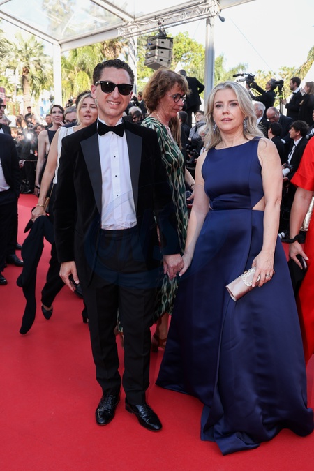 Maxime Saada et sa femme Sylvie - Montée des marches du film « L'amour ouf » lors du 77ème Festival International du Film de Cannes, au Palais des Festivals à Cannes. Le 23 mai 2024 © Jacovides-Moreau / Bestimage Red carpet of the movie « Beating Hearts » during the 77th Cannes International Film Festival at the Palais des Festivals in Cannes, France. On may 23th 2024