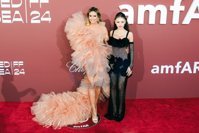Heidi Klum and Leni Olumi Klum poses on the Red Carpet at the 30th edition of amfAR Gala Cannes during the 77th Festival de Cannes on Thursday 23 May 2024 at Hôtel du Cap, Eden Roc, Antibes. ., Credit:Julie Edwards / Avalon