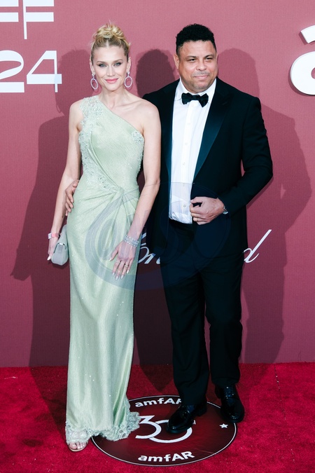 Celina Locks and Ronaldo Luís Nazário de Lima poses on the Red Carpet at the 30th edition of amfAR Gala Cannes during the 77th Festival de Cannes on Thursday 23 May 2024 at Hôtel du Cap, Eden Roc, Antibes. ., Credit:Julie Edwards / Avalon