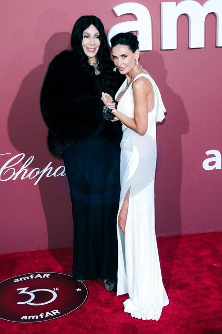 Cher and Demi Moore poses on the Red Carpet at the 30th edition of amfAR Gala Cannes during the 77th Festival de Cannes on Thursday 23 May 2024 at Hôtel du Cap, Eden Roc, Antibes. ., Credit:Julie Edwards / Avalon