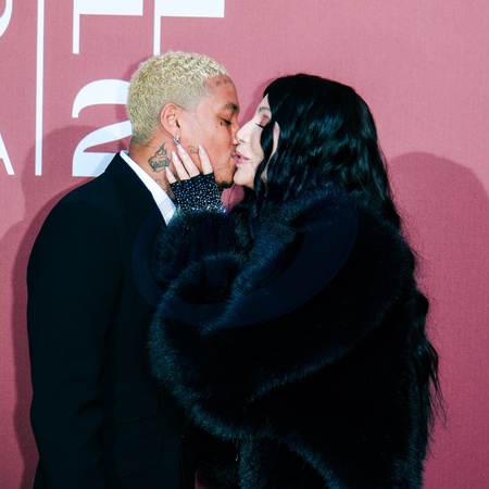 Alexander 'AE' Edwards and Cher poses on the Red Carpet at the 30th edition of amfAR Gala Cannes during the 77th Festival de Cannes on Thursday 23 May 2024 at Hôtel du Cap, Eden Roc, Antibes. ., Credit:Julie Edwards / Avalon