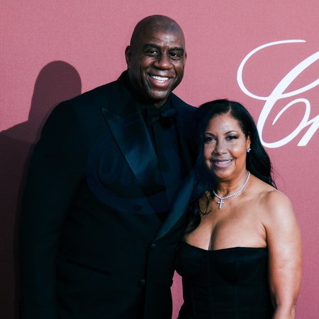 Magic Johnson and Cookie Johnson poses on the Red Carpet at the 30th edition of amfAR Gala Cannes during the 77th Festival de Cannes on Thursday 23 May 2024 at Hôtel du Cap, Eden Roc, Antibes. ., Credit:Julie Edwards / Avalon