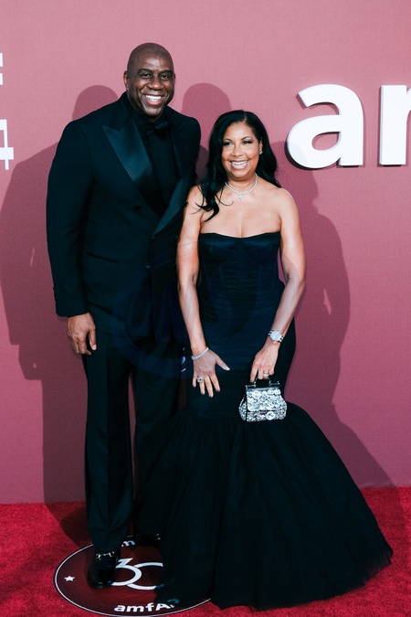 Magic Johnson and Cookie Johnson poses on the Red Carpet at the 30th edition of amfAR Gala Cannes during the 77th Festival de Cannes on Thursday 23 May 2024 at Hôtel du Cap, Eden Roc, Antibes. ., Credit:Julie Edwards / Avalon