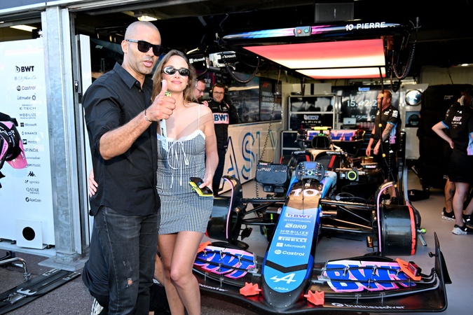 Tony Parker et sa compagne Agathe Teyssier durant la journée des qualifications du 81ème Grand Prix de Formule 1 de Monaco, le 25 mai 2024. © Bruno Bebert/Bestimage Celebrities during qualifying for the Monaco Formula 1 (F1) Grand Prix. Monaco, May 25th, 2024.