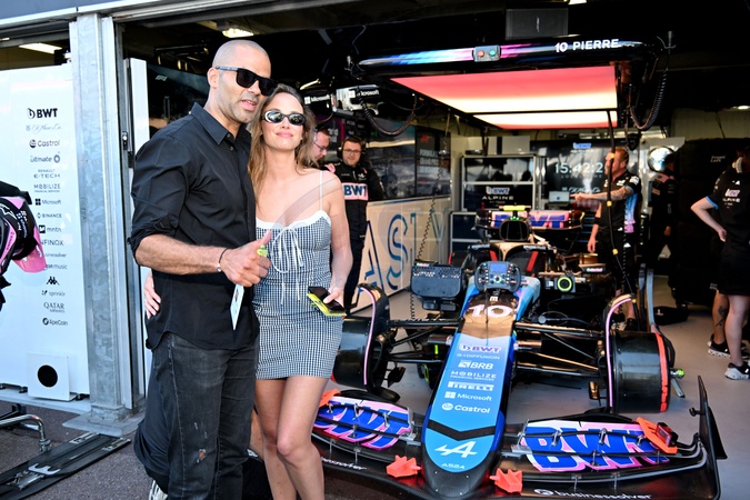 Tony Parker et sa compagne Agathe Teyssier durant la journée des qualifications du 81ème Grand Prix de Formule 1 de Monaco, le 25 mai 2024. © Bruno Bebert/Bestimage Celebrities during qualifying for the Monaco Formula 1 (F1) Grand Prix. Monaco, May 25th, 2024.