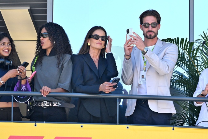 Tina Kunakey, l'ex de Vincent Cassel, Izabel Goulart et son fiancé Kevin Trapp durant la journée des qualifications du 81ème Grand Prix de Formule 1 de Monaco, le 25 mai 2024. © Bruno Bebert/Bestimage Celebrities during qualifying for the Monaco Formula 1 (F1) Grand Prix. Monaco, May 25th, 2024.