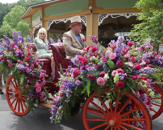 Dolly Parton riding in the Dewitt in the Dollywood Parade celebrating the opening of the Dolly Parton Experience at Dollywood on May 25, 2024, in Pigeon Forge, TN. © Curtis Hilbun/AFF-USA.COM** NO US TABLOIDS**
