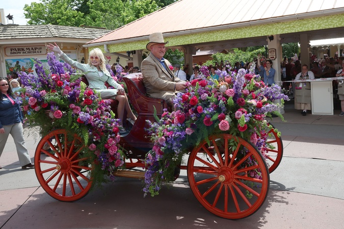 Dolly Parton riding in the Dewitt in the Dollywood Parade celebrating the opening of the Dolly Parton Experience at Dollywood on May 25, 2024, in Pigeon Forge, TN. © Curtis Hilbun/AFF-USA.COM** NO US TABLOIDS**