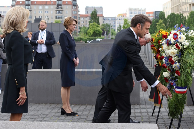 Prezydent Francji Emmanuel Macron i Pierwsza Dama Brigitte Macron, Franck-Walter Steinmeier, Prezydent Republiki Federalnej Niemiec i Pani Elke Budenbender, pod Pomnikiem Holokaustu w Berlinie.