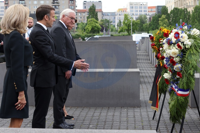 Prezydent Francji Emmanuel Macron i Pierwsza Dama Brigitte Macron, Franck-Walter Steinmeier, Prezydent Republiki Federalnej Niemiec i Pani Elke Budenbender, pod Pomnikiem Holokaustu w Berlinie.