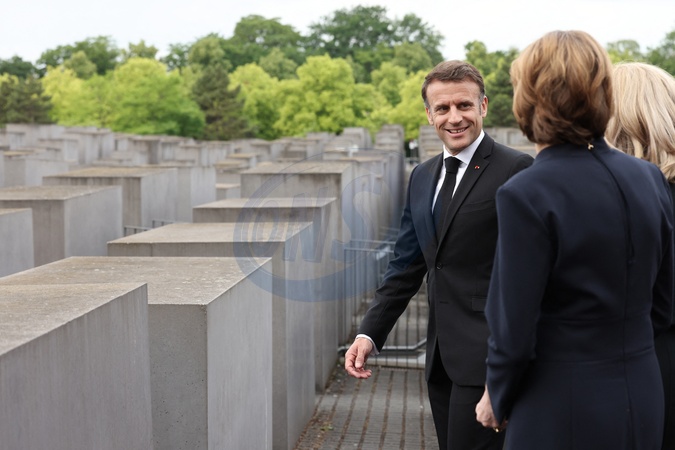 Le président français, Emmanuel Macron et la première dame, Brigitte Macron, madame Elke Budenbender - Le président français, E.Macron et la première dame, B.Macron, F.W.Steinmeier, président de la république fédérale d'Allemagne et madame E.Budenbender, au Mémorial de l'Holocauste à Berlin, le 27 mai 2024. Les époux Klarsfeld, et leur fils A.Klarsfeld, étaient également présents. Le couple présidentiel est en visite d'Etat de trois jours en Allemagne, du 26 au 28 mai 2024. © Stéphane Lemouton / Bestimage French President E.Macron and First Lady B.Macron, F.W.Steinmeier, President of the Federal Republic of Germany and Mrs. E.Budenbender, at the Holocaust Memorial in Berlin, May 27, 2024. The Klarsfeld couple , and their son A.Klarsfeld, were also present. The presidential couple is on a three-day state visit to Germany, from May 26 to 28, 2024.