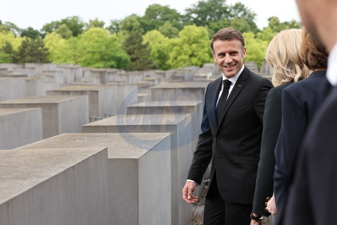 Prezydent Francji Emmanuel Macron i Pierwsza Dama Brigitte Macron, Franck-Walter Steinmeier, Prezydent Republiki Federalnej Niemiec i Pani Elke Budenbender, pod Pomnikiem Holokaustu w Berlinie.