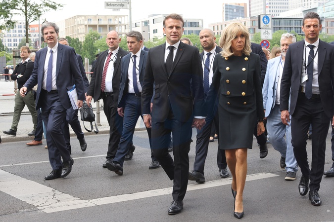 Le président français, Emmanuel Macron et la première dame, Brigitte Macron - Le président français, E.Macron et la première dame, B.Macron, F.W.Steinmeier, président de la république fédérale d'Allemagne et madame E.Budenbender, au Mémorial de l'Holocauste à Berlin, le 27 mai 2024. Les époux Klarsfeld, et leur fils A.Klarsfeld, étaient également présents. Le couple présidentiel est en visite d'Etat de trois jours en Allemagne, du 26 au 28 mai 2024. © Stéphane Lemouton / Bestimage French President E.Macron and First Lady B.Macron, F.W.Steinmeier, President of the Federal Republic of Germany and Mrs. E.Budenbender, at the Holocaust Memorial in Berlin, May 27, 2024. The Klarsfeld couple , and their son A.Klarsfeld, were also present. The presidential couple is on a three-day state visit to Germany, from May 26 to 28, 2024.