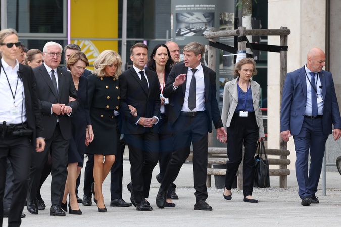 Prezydent Francji Emmanuel Macron i Pierwsza Dama Brigitte Macron, Franck-Walter Steinmeier, Prezydent Republiki Federalnej Niemiec i Pani Elke Budenbender, pod Pomnikiem Holokaustu w Berlinie.