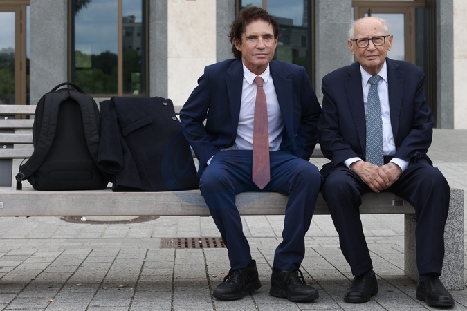 Arno Klarsfeld et son père Serge Klarsfeld - Le président français, E.Macron et la première dame, B.Macron, F.W.Steinmeier, président de la république fédérale d'Allemagne et madame E.Budenbender, au Mémorial de l'Holocauste à Berlin, le 27 mai 2024. Les époux Klarsfeld, et leur fils A.Klarsfeld, étaient également présents. Le couple présidentiel est en visite d'Etat de trois jours en Allemagne, du 26 au 28 mai 2024. © Stéphane Lemouton / Bestimage French President E.Macron and First Lady B.Macron, F.W.Steinmeier, President of the Federal Republic of Germany and Mrs. E.Budenbender, at the Holocaust Memorial in Berlin, May 27, 2024. The Klarsfeld couple , and their son A.Klarsfeld, were also present. The presidential couple is on a three-day state visit to Germany, from May 26 to 28, 2024.