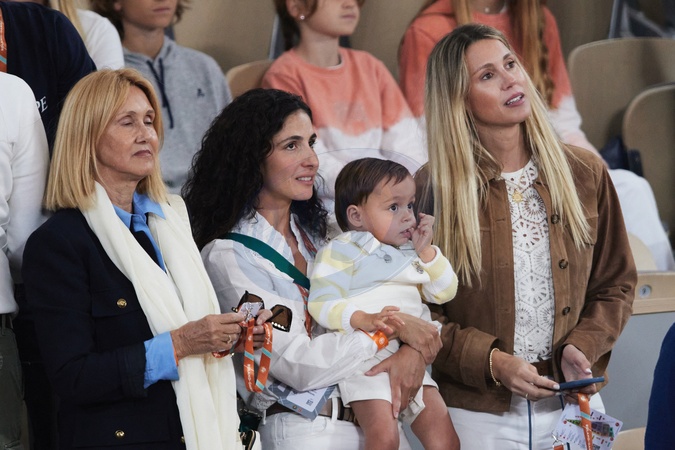 Ana Maria Parera (mère de Rafael Nadal), Xisca Perello (femme de Rafael Nadal), son fils Rafael Junior et Maria Isabel Nadal (soeur de Rafael Nadal) - La famille de Rafael Nadal (Rafa) dans les tribunes pour le premier tour des Internationaux de France de tennis de Roland Garros 2024 opposant Rafael Nadal (Rafa) à Alexander Zverev, à Paris, France, le 27 mai 2024. © Jacovides-Moreau/Bestimage Rafael Nadal Rafa's family in the stands for the first round of the French Open tennis tournament at Roland Garros 2024 between Rafael Nadal (Rafa) and Alexander Zverev, in Paris, France, on May 27, 2024.