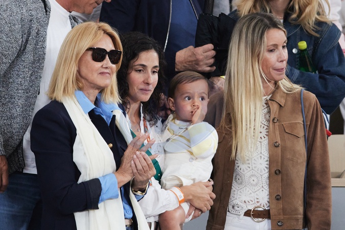 Ana Maria Parera (mère de Rafael Nadal), Xisca Perello (femme de Rafael Nadal), son fils Rafael Junior et Maria Isabel Nadal (soeur de Rafael Nadal) - La famille de Rafael Nadal (Rafa) dans les tribunes pour le premier tour des Internationaux de France de tennis de Roland Garros 2024 opposant Rafael Nadal (Rafa) à Alexander Zverev, à Paris, France, le 27 mai 2024. © Jacovides-Moreau/Bestimage Rafael Nadal Rafa's family in the stands for the first round of the French Open tennis tournament at Roland Garros 2024 between Rafael Nadal (Rafa) and Alexander Zverev, in Paris, France, on May 27, 2024.