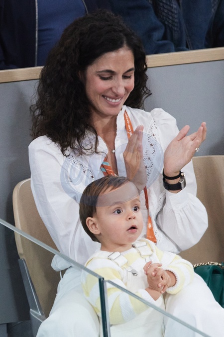 Xisca Perello (femme de Rafael Nadal) et son fils Rafael Junior - La famille de Rafael Nadal (Rafa) dans les tribunes pour le premier tour des Internationaux de France de tennis de Roland Garros 2024 opposant Rafael Nadal (Rafa) à Alexander Zverev, à Paris, France, le 27 mai 2024. © Jacovides-Moreau/Bestimage Rafael Nadal Rafa's family in the stands for the first round of the French Open tennis tournament at Roland Garros 2024 between Rafael Nadal (Rafa) and Alexander Zverev, in Paris, France, on May 27, 2024.