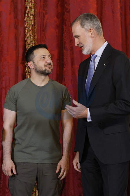 Le président ukrainien Volodymyr Zelensky reçu par Le roi Felipe VI et la reine Letizia d’Espagne, au palais royal à Madrid