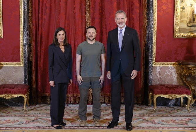 Le président ukrainien Volodymyr Zelensky reçu par Le roi Felipe VI et la reine Letizia d’Espagne, au palais royal à Madrid