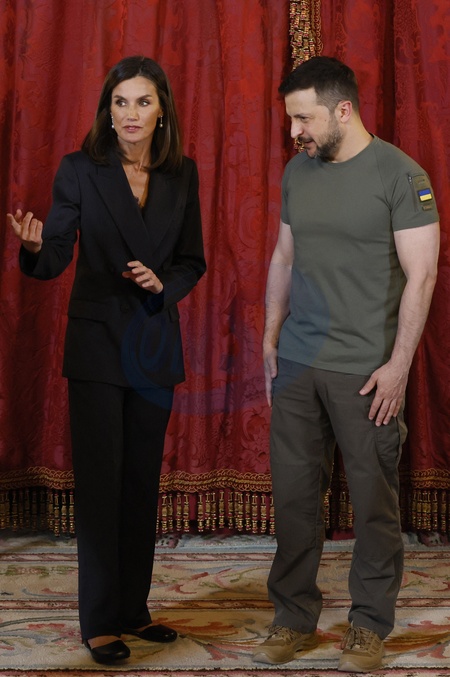 Le président ukrainien Volodymyr Zelensky reçu par Le roi Felipe VI et la reine Letizia d’Espagne, au palais royal à Madrid