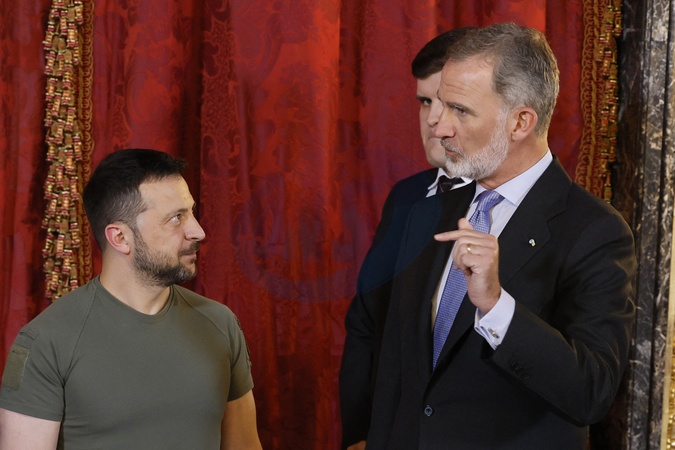 Le président ukrainien Volodymyr Zelensky reçu par Le roi Felipe VI et la reine Letizia d’Espagne, au palais royal à Madrid