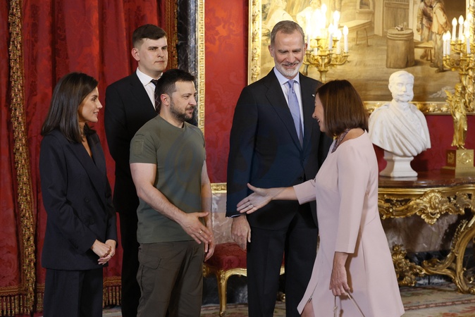 Le président ukrainien Volodymyr Zelensky reçu par Le roi Felipe VI et la reine Letizia d’Espagne, au palais royal à Madrid