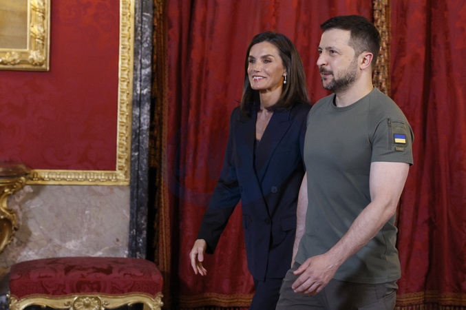 Le président ukrainien Volodymyr Zelensky reçu par Le roi Felipe VI et la reine Letizia d’Espagne, au palais royal à Madrid