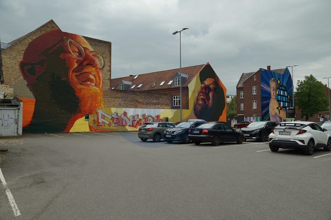 Vejle, Jutland, Denmark - Street ArtCommisioned by local Municipal Councils throughout Denmark to deliver positive messages to society. The Urban spaces have undergone an amazing transformation.The following artists have participated so far:Berit Bærentsen, Britta Egebjerg, Danail Kraev, Jens Jacobsen, Jonathan (Facio), Jules Leduc, Junette Bay, Nanna Nør, Olivia Linn, Stine Ofelia, Maria Tonsgaard, Eske Touborg, Christoffer Bukh, Peter Skensved and Jens Stentoft., Credit:ANDREW POWELL / Avalon