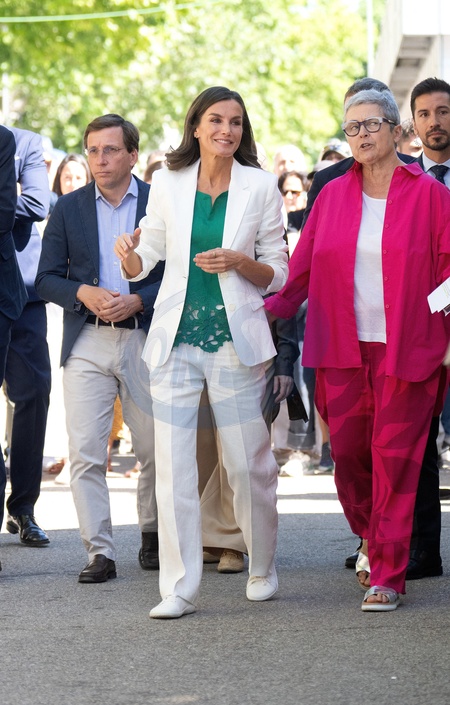 La reine Letizia d'Espagne lors de l'inauguration de la 83ème édition de la Foire du livre de Madrid, au parc du Retiro à Madrid, Espagne, le 31 mai 2024. © Lalo Yasky / Bestimage Queen Letizia during the inauguration of the 83rd edition of the Madrid Book Fair, at the Retiro Park, on May 31, 2024, in Madrid (Spain). The Book Fair is held annually to promote books, reading and the activities of companies, entities and institutions involved in the publishing, distribution or sale of books to the public. The 83rd edition of the Madrid Book Fair is held under the slogan 'Sport illuminates the Fair', which evokes the idea of physical activity exercised as a game or competition, and whose practice is an inspiration for literary creation.