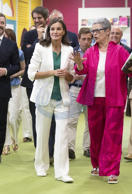 La reine Letizia d'Espagne lors de l'inauguration de la 83ème édition de la Foire du livre de Madrid, au parc du Retiro à Madrid, Espagne, le 31 mai 2024. © Lalo Yasky / Bestimage Queen Letizia during the inauguration of the 83rd edition of the Madrid Book Fair, at the Retiro Park, on May 31, 2024, in Madrid (Spain). The Book Fair is held annually to promote books, reading and the activities of companies, entities and institutions involved in the publishing, distribution or sale of books to the public. The 83rd edition of the Madrid Book Fair is held under the slogan 'Sport illuminates the Fair', which evokes the idea of physical activity exercised as a game or competition, and whose practice is an inspiration for literary creation.