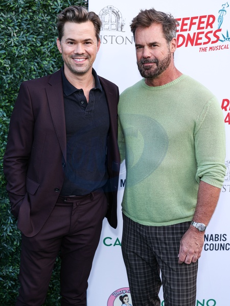 HOLLYWOOD, LOS ANGELES, CALIFORNIA, USA - MAY 30: Andrew Rannells and boyfriend Tuc Watkins arrive at the ‘Reefer Madness: The Musical' Opening Night Performance held at The Whitley on May 30, 2024 in Hollywood, Los Angeles, California, United States., Credit:Xavier Collin / Avalon
