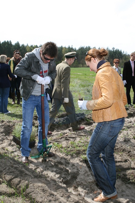 Dzien Ziemi. Sadzenie drzew z Fundacja Nasza Ziemia i firma Lancome w Nadlesnictwie Drewnica, Lesniczowka Sokolowek