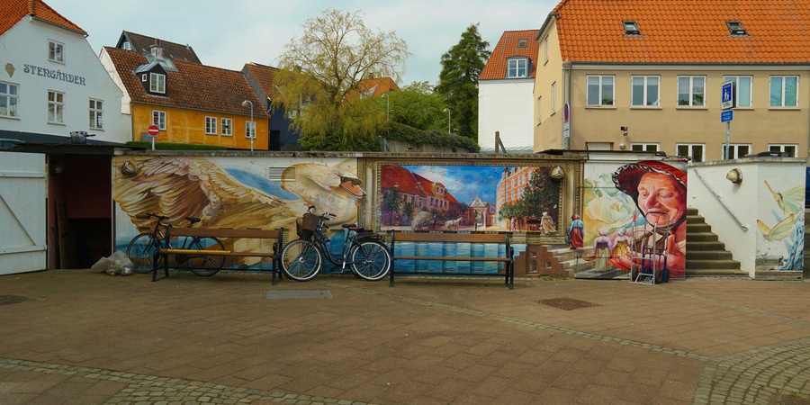 Helsingor, Zeeland, Denmark, - SVINGELPORT AND SIMON SPIES Street Art gadekunst