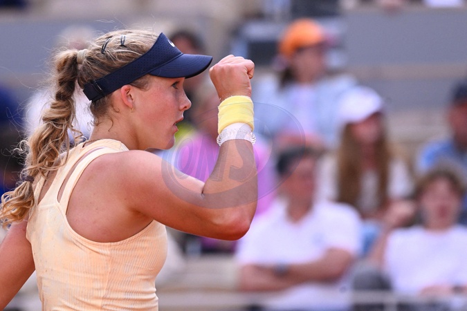 Mirra Andreeva ( RUS ) celebrates during the 2024 French Open at Roland Garros on June 5, 2024 in Paris, France. ( Photo by federico pestellini / panoramic ) -