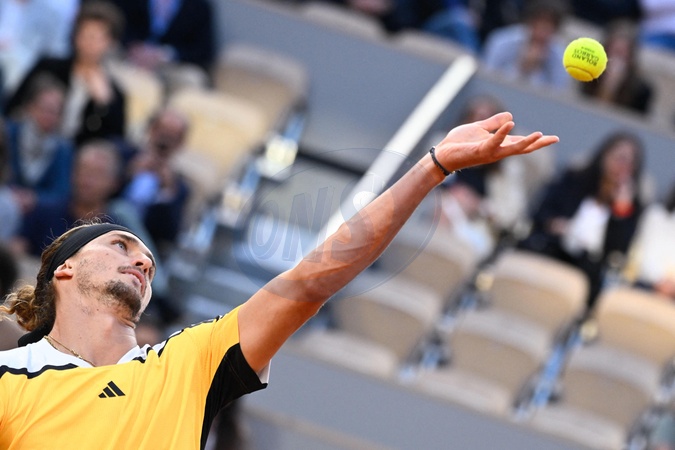 Alexander Zverev ( Allemagne ) serves during the 2024 French Open at Roland Garros on June 5, 2024 in Paris, France. ( Photo by federico pestellini / panoramic ) -