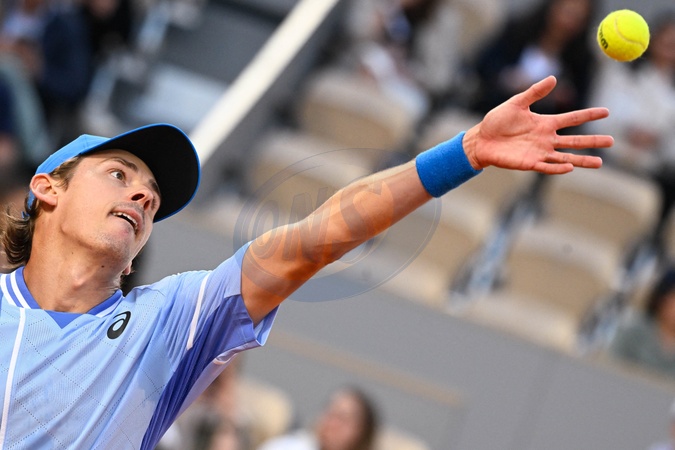 Alex De Minaur ( AUS ) serves during the 2024 French Open at Roland Garros on June 5, 2024 in Paris, France. ( Photo by federico pestellini / panoramic ) -